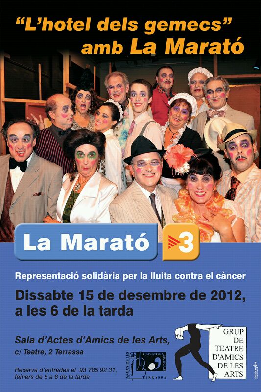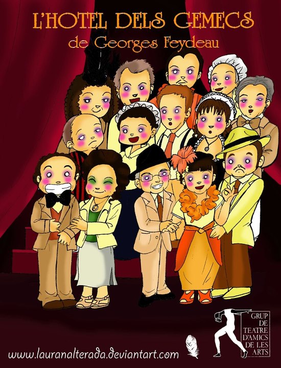 En aquest lloc comencen els embolics, les anades i vingudes, les corredisses, portes que s'obren i es tanquen, llits que giren, i per acabar d'embolicar la troca el mosso de l'Hotel és la mateixa estampa d'en Victor Manuel cosa que provoca molts ensurts i divertits malentesos. Tot queda resolt al tercer acte i la burguesia queda en el seu lloc perquè cap dels seus integrants qüestiona públicament la seva escala de valors. Hem volgut montar un vodevil perquè passeu un parell d'hores divertides i us oblideu per una estona de tots els problemes que estem vivint en aquests temps de retallades i privacións. M. Mercè Monterde. - Directora - |