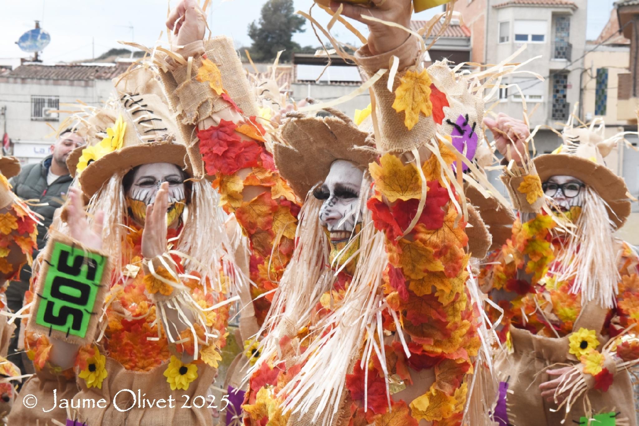 CARNESTOTLES DE TERRASSA 2025Dissabte 1 de març de 2025 Milenials - "No em toqueu els pebrots" Aquest any la reivindicació va dirigida als especuladors de la pagesia, volem apoyar als nostres pagesos i donar veu perque es faci justicia. Com els espanta-pajarracos i espantem als pajarracos que explotan la pagesia. |